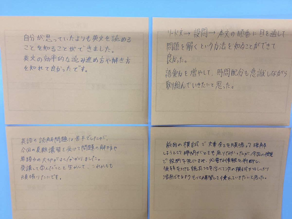 受講カードの裏に、受講の感想を書いてくれた生徒がいました。いくつかご紹介します。
