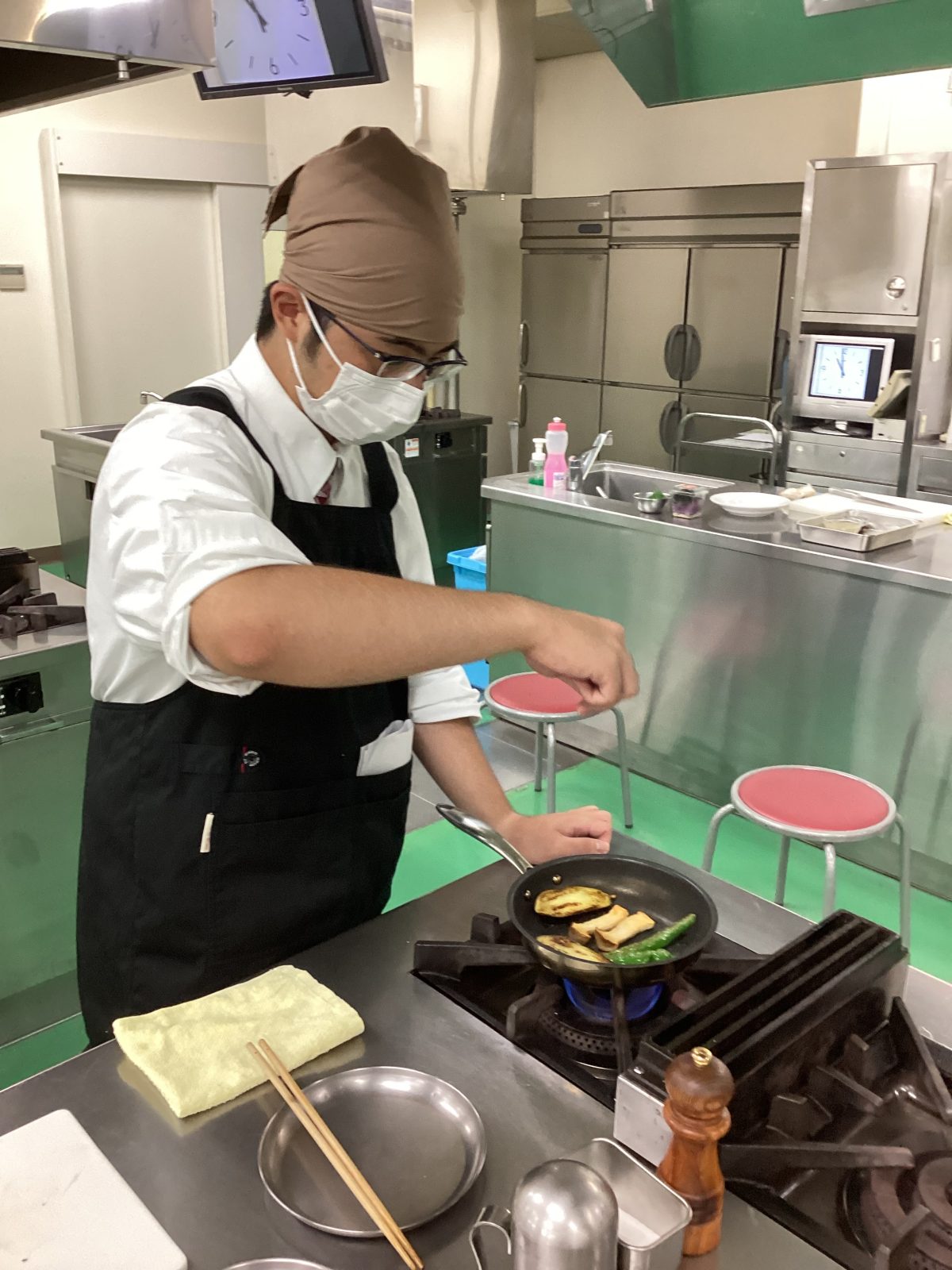 本日の講師はフレンチ・イタリアンが専門の高橋辰弥先生。先生の丁寧なお手本をみて、それから実際に作ってみます。うまくできるかな…